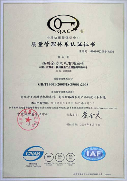 質(zhì)量管理體系證書(shū)
